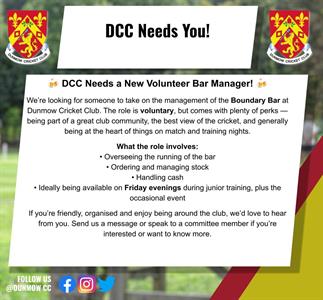 Dunmow Cricket Club is on the lookout for a new Volunteer Bar Manager to take the helm of our much-loved Boundary Bar.